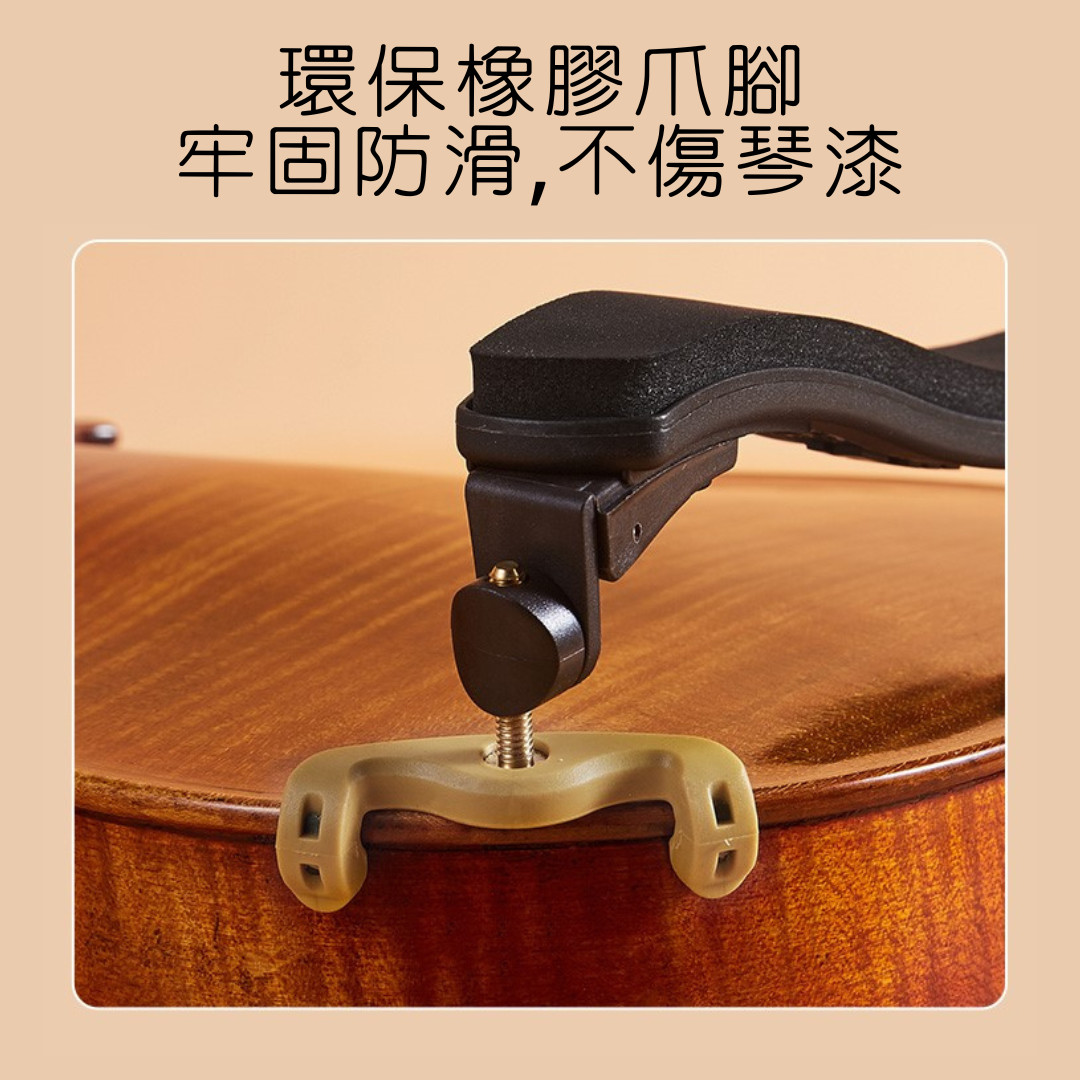 - 強化複合材料底座 底座採用高強度複合塑料製成,具備理想的剛性與適度的彈性,能確保在激烈的運弓過程中肩墊依然穩如磐石,不發生位移或晃動。